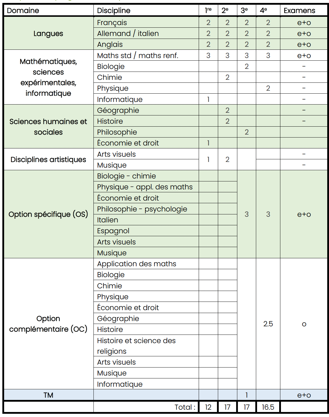 - 16 périodes hebdomadaires sur toute l’année scolaire sur 4 ans